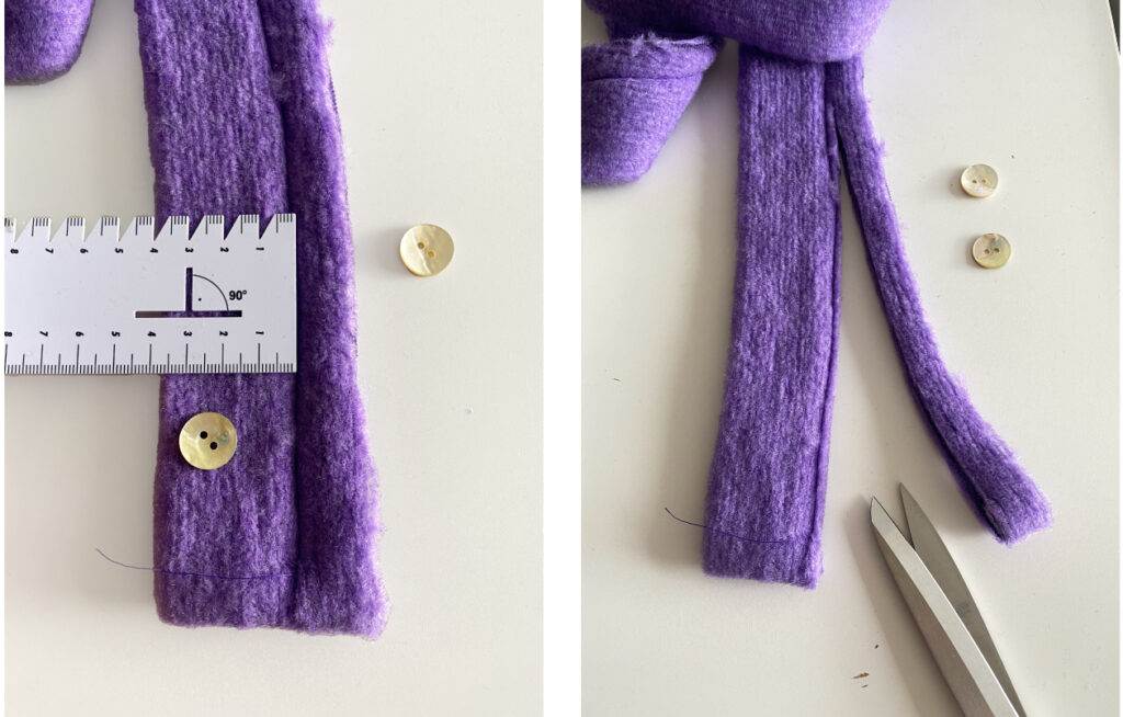 Meine Blende soll eine fertige Breite von 3,5cm haben. Meine Knöpfe sind 1,5cm groß.