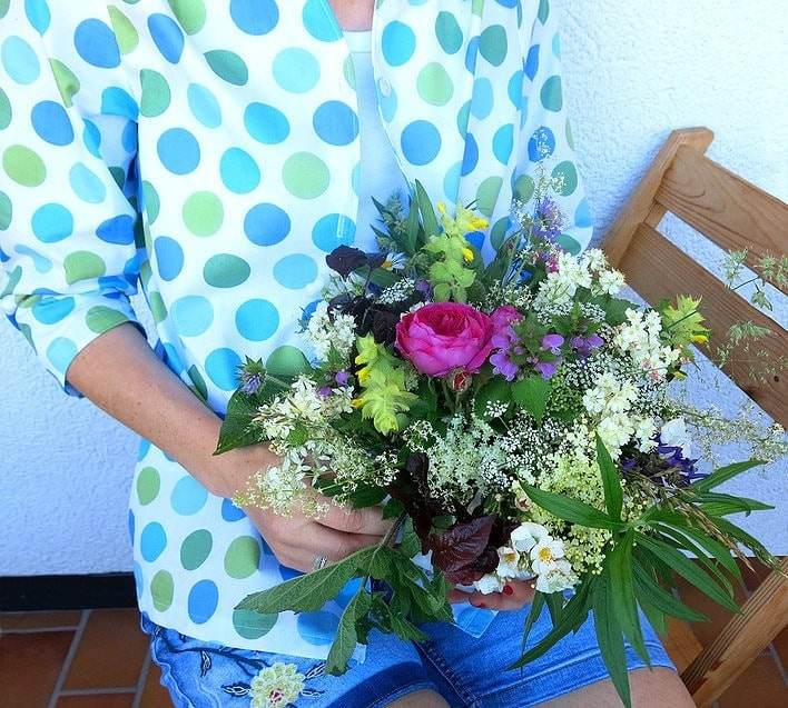 Mit dem Radl auf zum Fotosshooting! Durch Wiesen und Felder bin ich geradelt und hab mir am Wegesrand einen schönen Strauß gepflückt. Auf dem Nachhauseweg musste dann eine überhängende Rose vom Gartenzaun des über übernächsten Nachbargrundstückes allerdings auch noch mit.