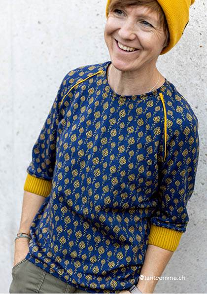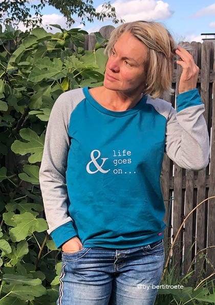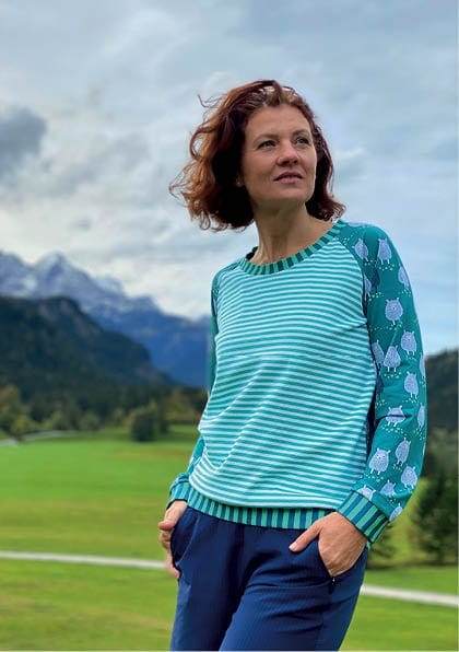 Dieser Raglanpulli hat sich zu einem meiner Lieblingsschnitte entwickelt. Die Passform ist perfekt für mich und die Gestaltungsmöglichkeiten sind unendlich. Habe den Pulli schon einige Male genäht. Danke dafür.