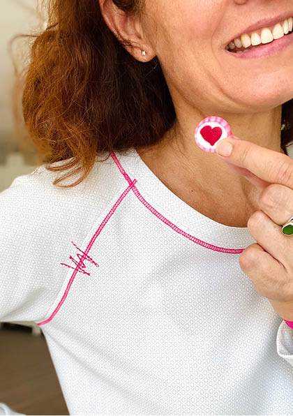Unter #freuleinsbasicpulli findest du auf Instagram viele weitere Designbeispiele. Als kleiner Hingucker sind die gewebte Etiketten  „Sahneschnitt(e)“ und „Schnittschnack“ im typischen Freuleins-PINK ganz neu in den Shop gewandert.