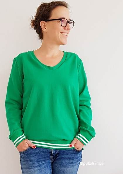 Im Schnittmuster vom BASIC-PULLI mit V-Ausschnitt sind drei Ausschnitttiefen enthalten. Damit ist für jeden Geschmack was dabei. Die kurze Nähanleitung inkl. Skizzen findest du direkt auf dem Schnittmuster.