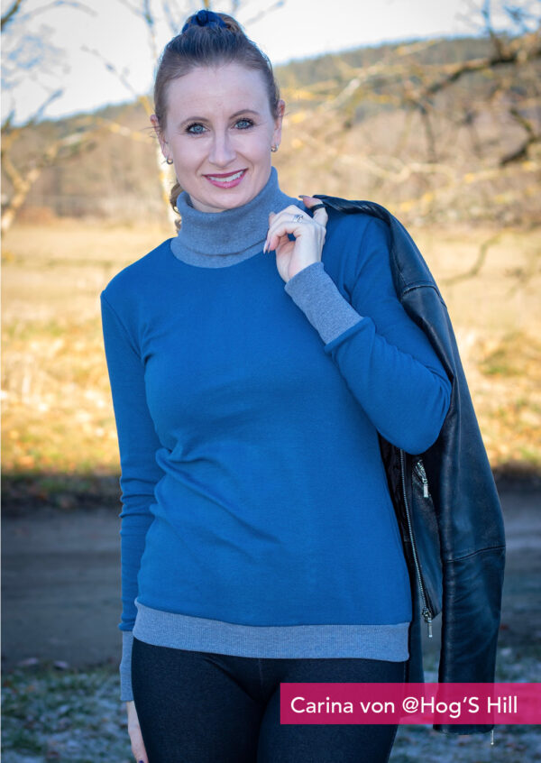 Das Basic Rollkragenpullover Schnittmuster ist  zeitlose und vielseitig, das in deiner Herbst- und Wintergarderobe nicht fehlen sollte. Verwendest du verschiedene Stoffe und Farben, wirst du ganz unterschiedliche Looks erzielen.