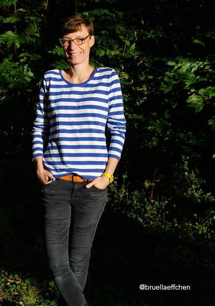 Du brauchst bei 140cm Stoffbreite für die Kurzarm-Variante: Gr.34-40 >knapp 1m – ab Gr.42 >1,10m