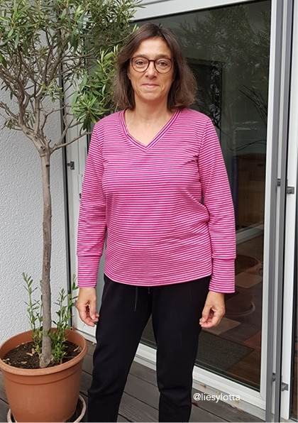 Im Schnittmuster sind 3 Ausschnitt-Tiefen und eine Kurz- und Langarmvariante enthalten. Damit kannst du nach dem Schnittmuster für alle Jahreszeiten Shirts genäht werden.