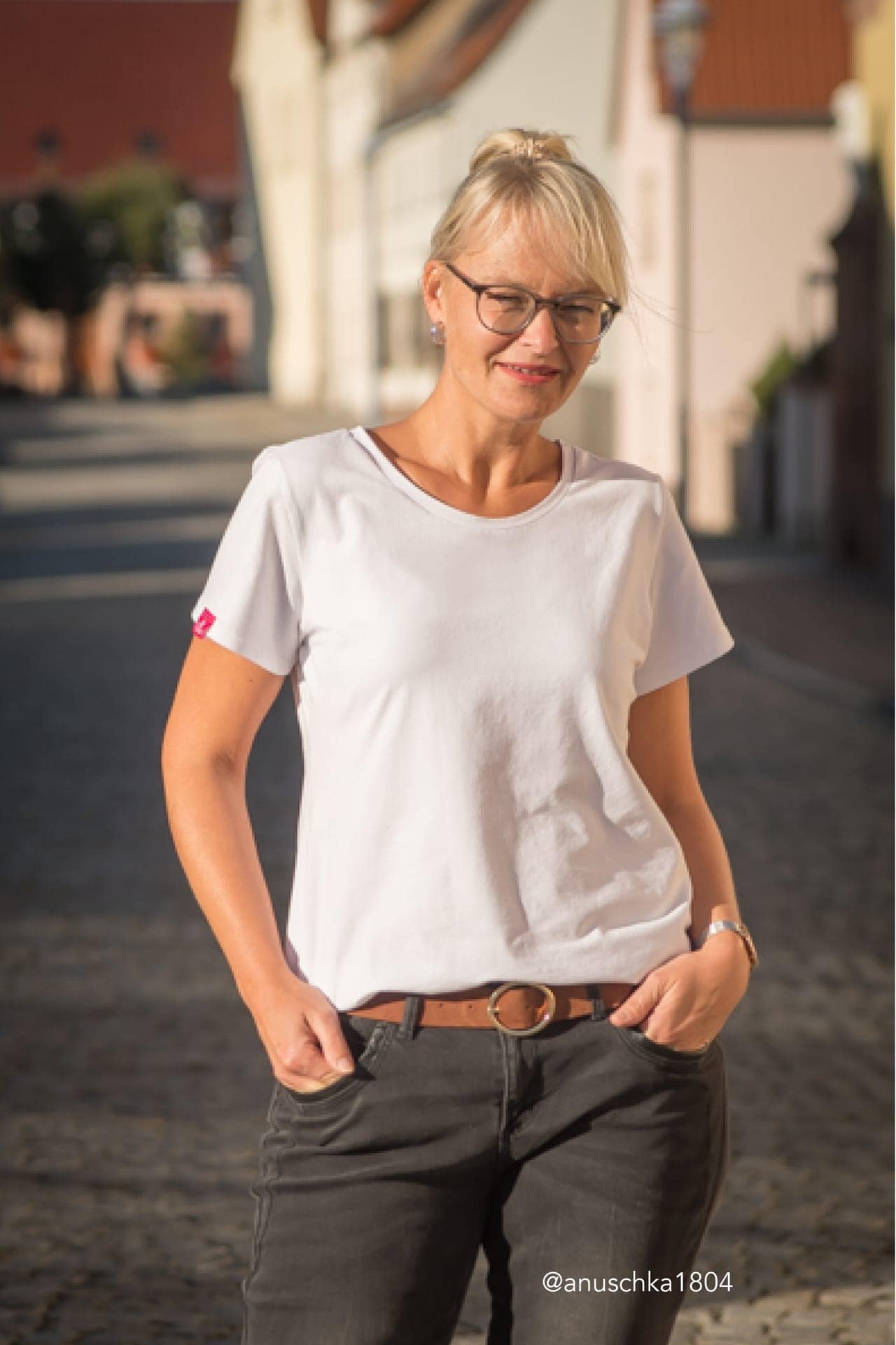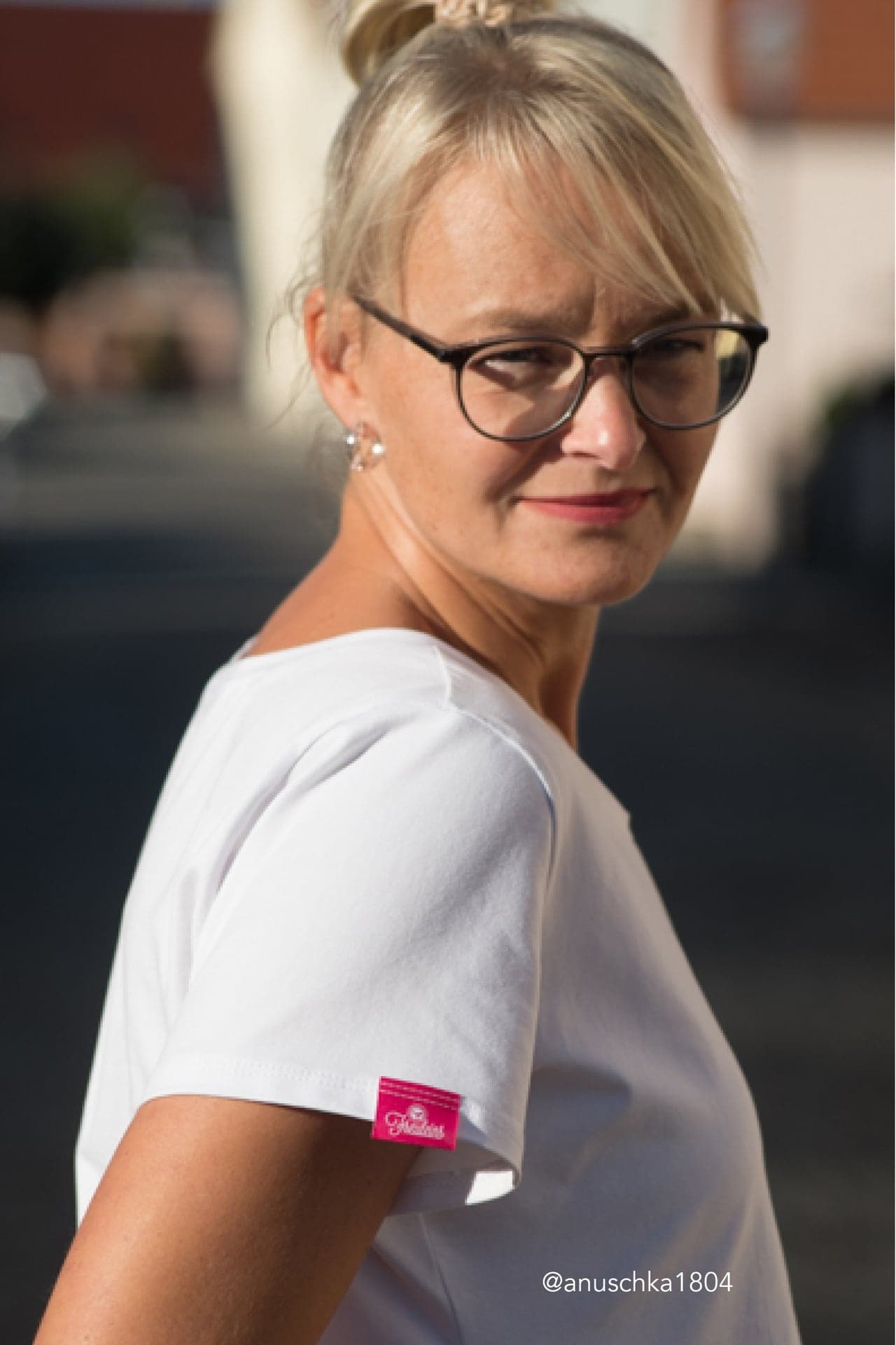 Unter #freuleinsbasicshirt findest du auf Instagram viele weitere Designbeispiele. Als kleiner Hingucker sind die gewebte Etiketten „Sahneschnitt(e)“ und „Schnittschnack“ im typischen Freuleins-PINK ganz neu in den Shop gewandert.