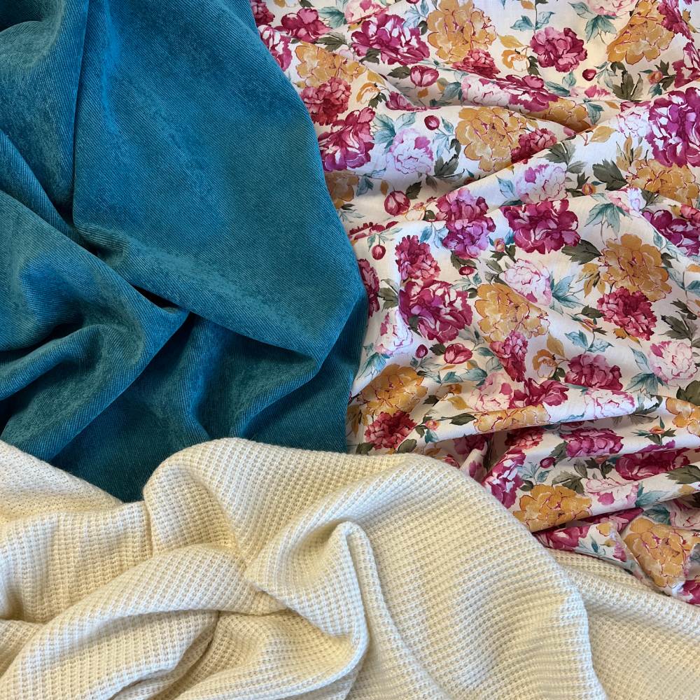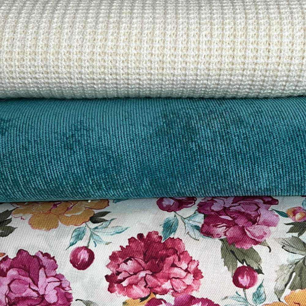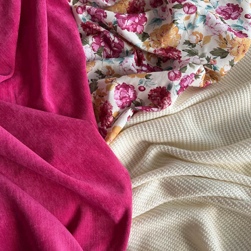 Um dein Outfit mit einer Hose oder Rock bzw. Pulli/Cardigan zu komplementieren passen der Babycord und cosy Strickstoff ganz hervorragend dazu.