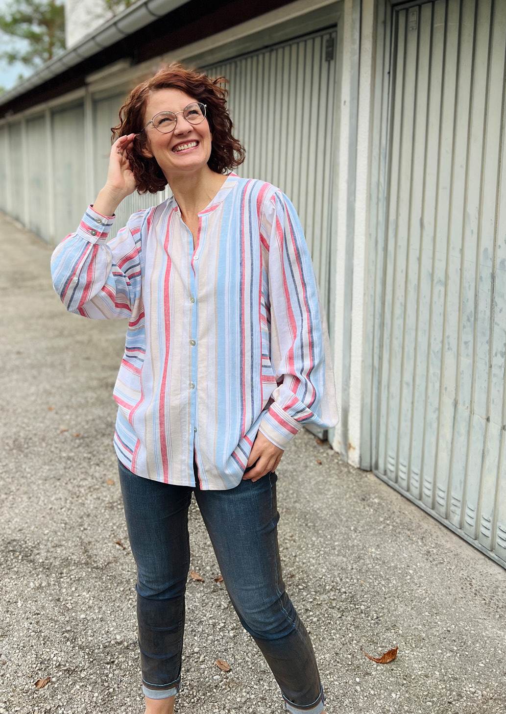 ‼️Bella Bella hat eine ganz besondere Schnittführung, ganz anders als deine bisherigen Blusen 😉. Diese Schnittführung kommt nur dann richtig zur Geltung, wenn ein Streifenstoff vernäht wird!