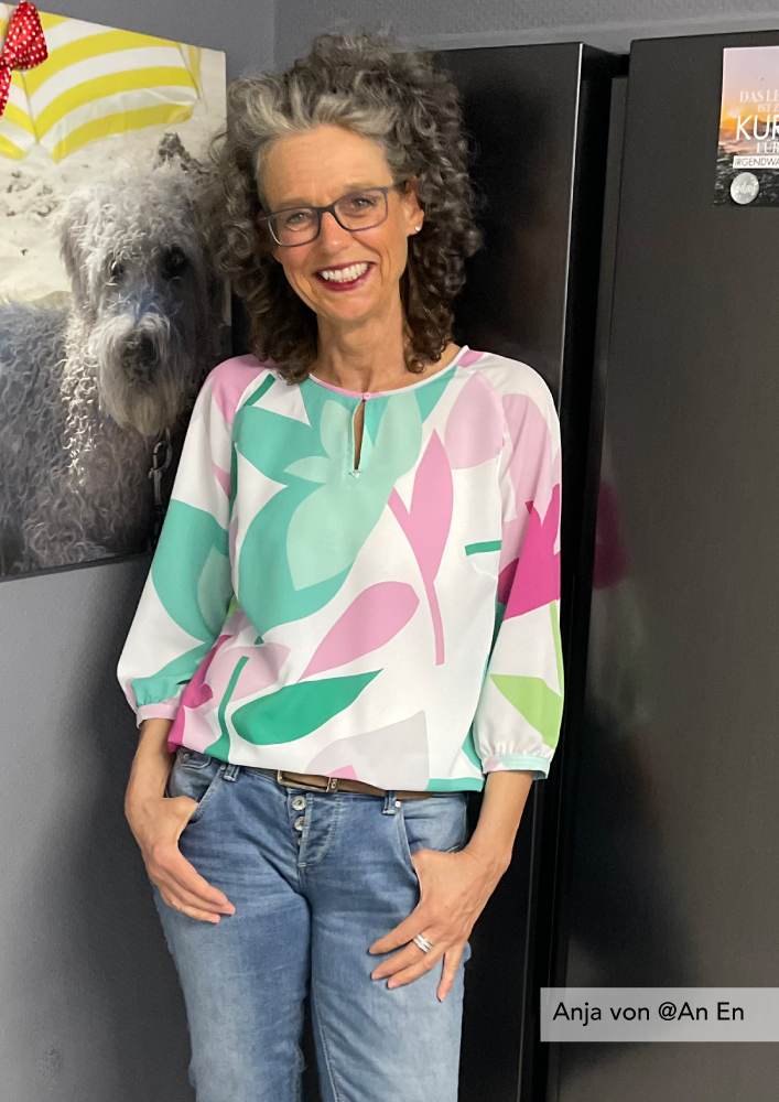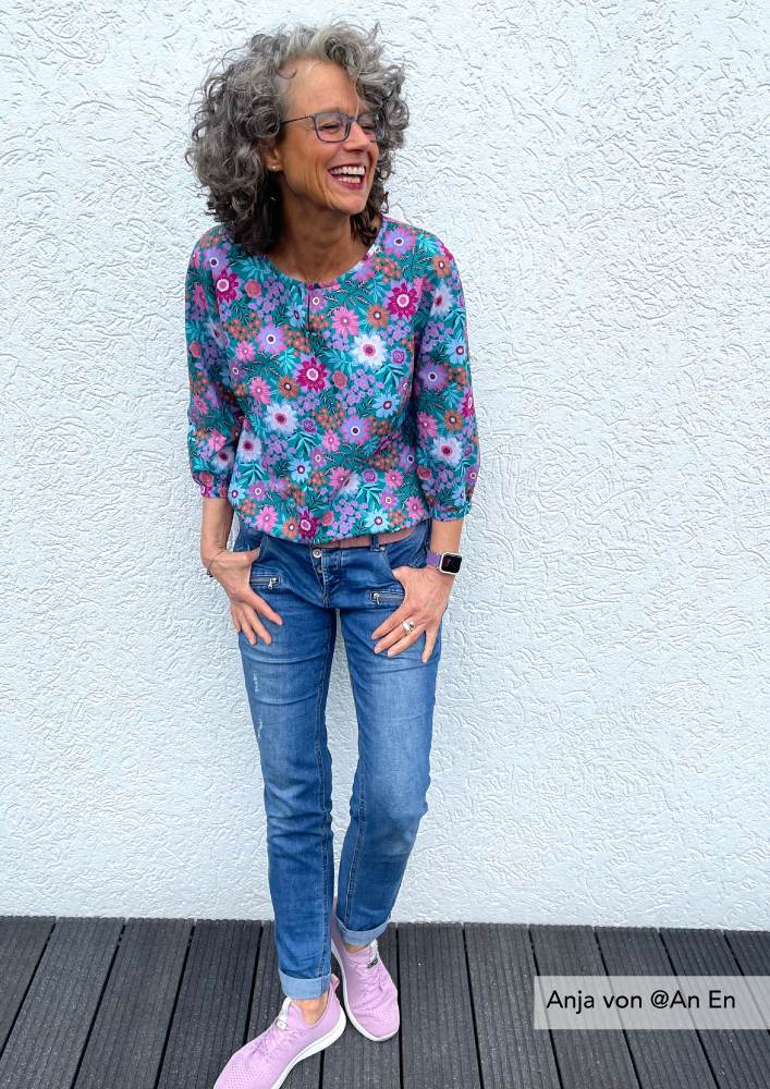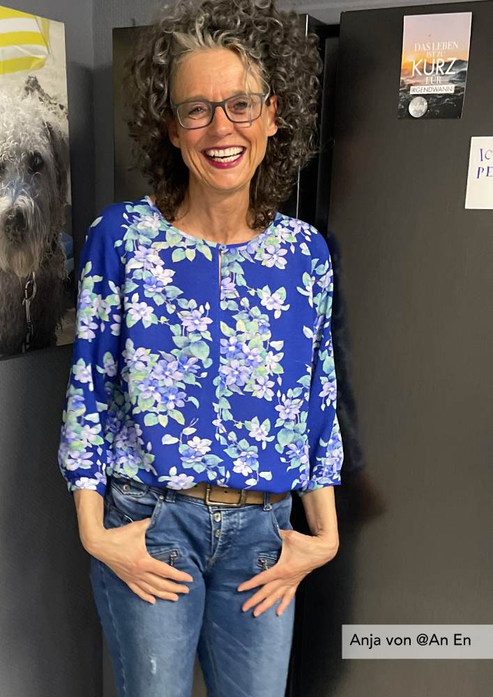 Ich dachte wie schön ist diese Bluse und ganz schnell lag das Papierschnittmuster im Warenkorb. Genäht habe ich sie noch nicht, bin aber ganz zuversichtlich das das Nähen kein Problem sein wird, da die Nähanleitungen und Nähvideos von Katrin immer leicht verständlich und gut beschrieben sind. Vielen Dank dafür, mir macht das Nähen dadurch immer viel Spaß.