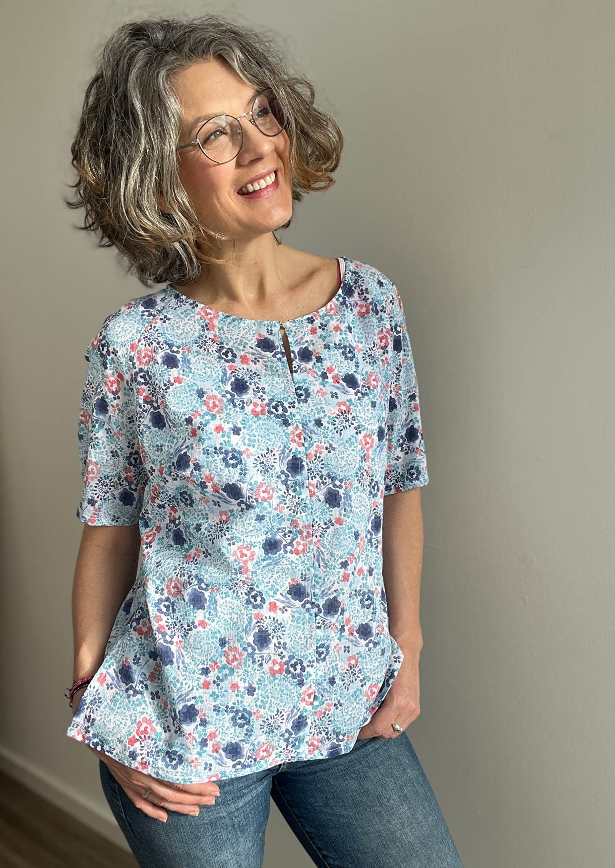 Konzipiert ist die Bluse für Webware, wie dünnes Leinen, Viskose, Musselin, Baumwollbatist, Crinkle etc.
