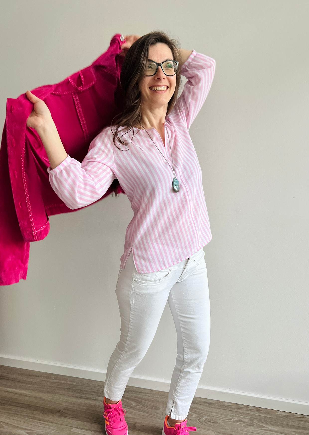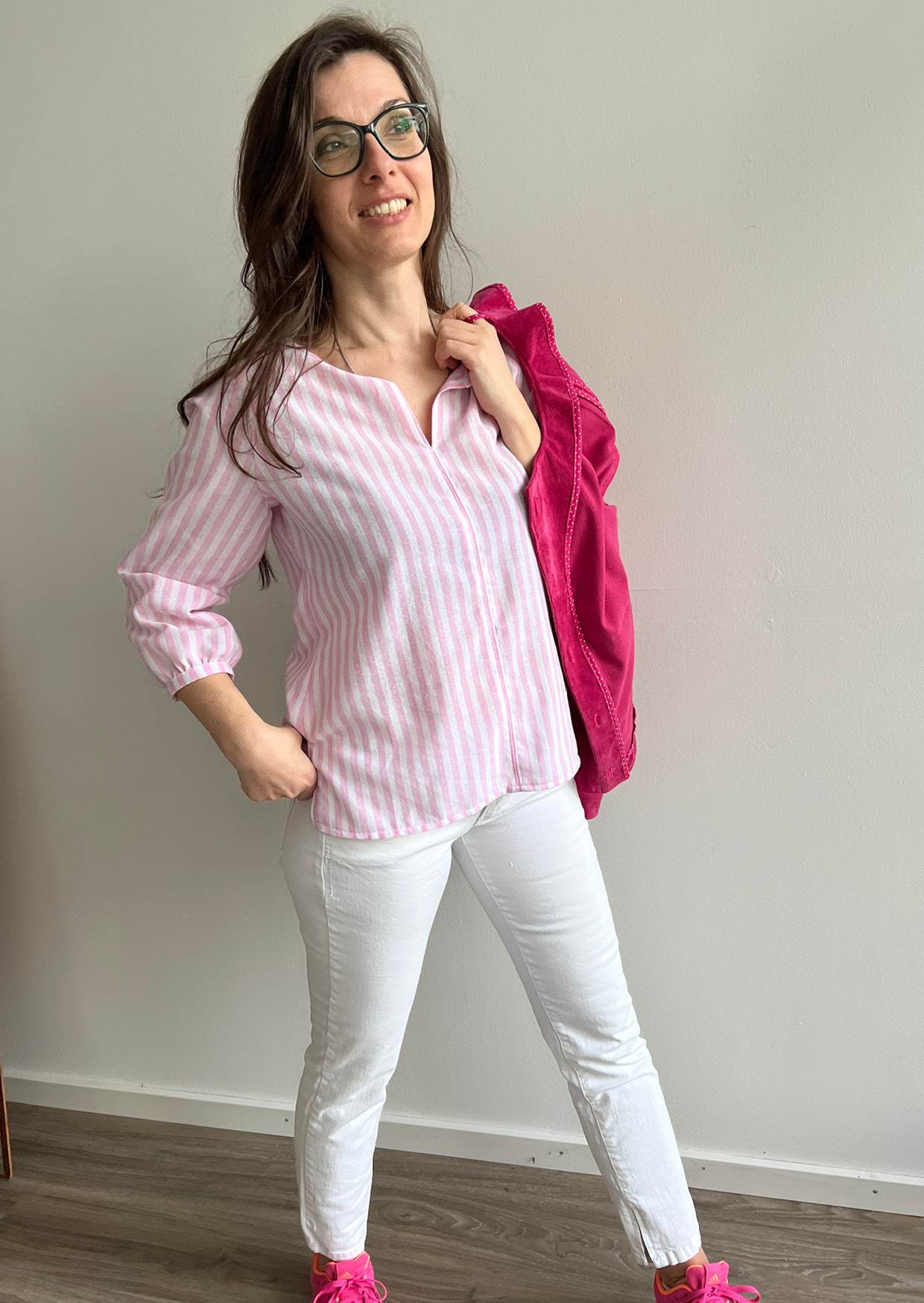 Die Bluse Billy ist das zweite Modell aus unserer „Freu Dich Kollektion“, einer 5-teiligen Capsule Wardrobe Garderobe. Alle 5 Modelle sind so auf einander abgestimmt, dass du alle Modell untereinander kombinieren kannst und damit viele tolle Outfits mit nur 5 Bekleidungsteilen kreieren kannst.