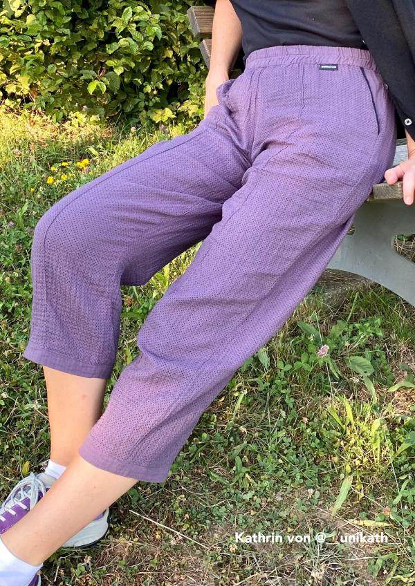 Konzipiert ist die Hose für luftige Sommerstoffe wie Krepp, Crinkle, Viskose/Rayon, Musselin, Batist, weich fallender Baumwollstoff etc., die für ein angenehmes Tragegefühl sorgen.