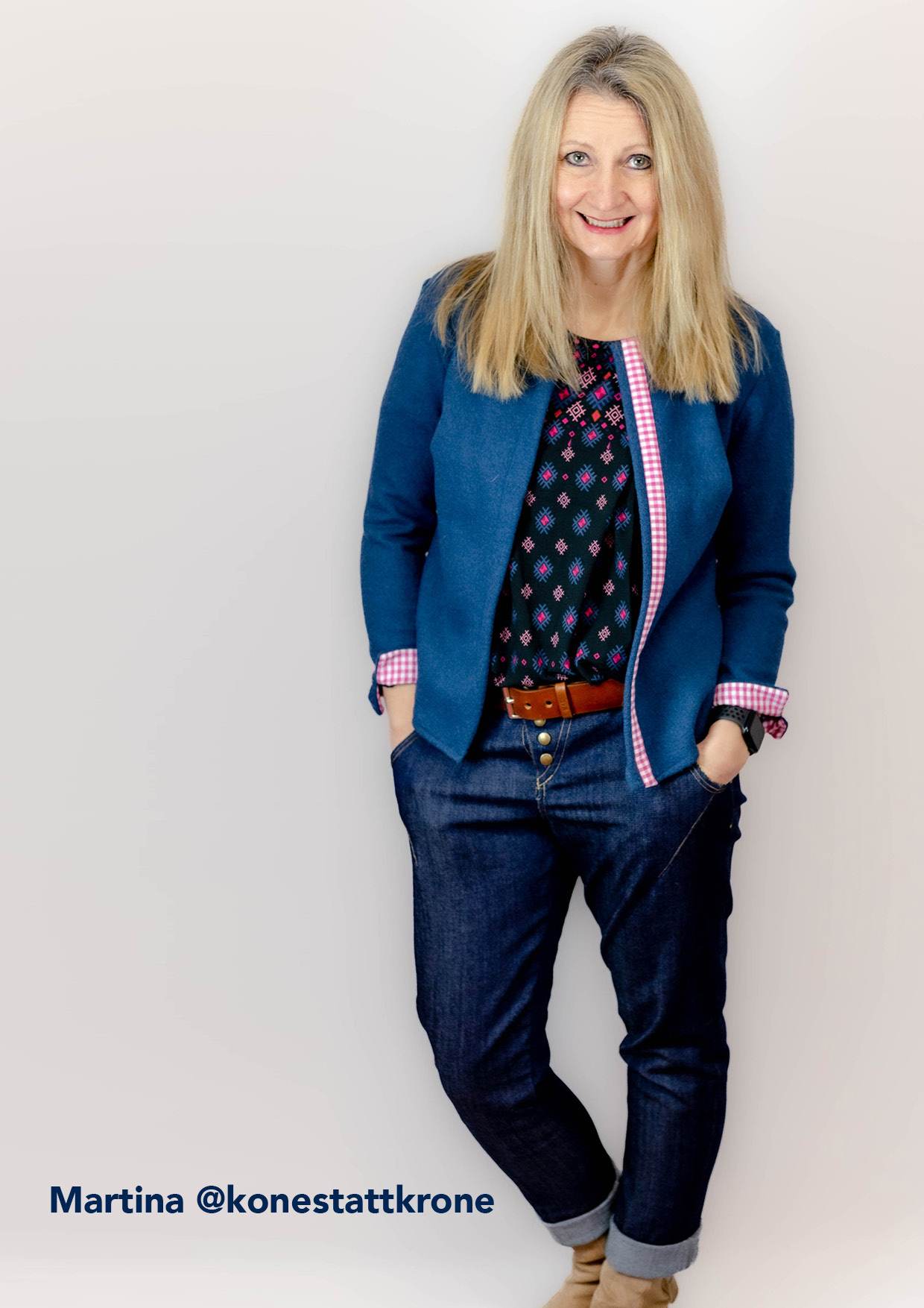 Meine absolute Lieblingsjeans. Sitzt einfach perfekt. Außer der üblichen Verlängerung der Hosenbeine (bin 1,80 groß) musste ich nix ändern, alles sitzt so, wie es soll, das erste mal. Hab schon zwei Glorias im Schrank und es werden sicher noch mehr. Keine Angst vor diesem Projekt, die Anleitung ist wirklich Schritt für Schritt und gut bebildert. Der Abnäher an der vorderen Tasche macht den Look der Hose besonders.