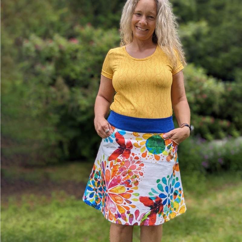 Solltest du dir bei der Stoffauswahl unsicher sein, kannst du gerne auch aus den passenden Nähpaketen zum Rock wählen*. Da ist alles drin was du brauchst und du sparst dir die Sucherei beim Zusammenstellen aller Zutaten.