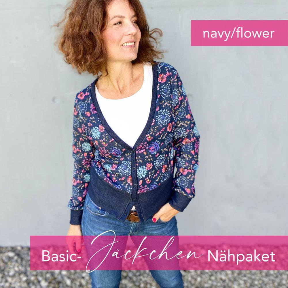 Nähpaket Basic Jäckchen – navy/flower