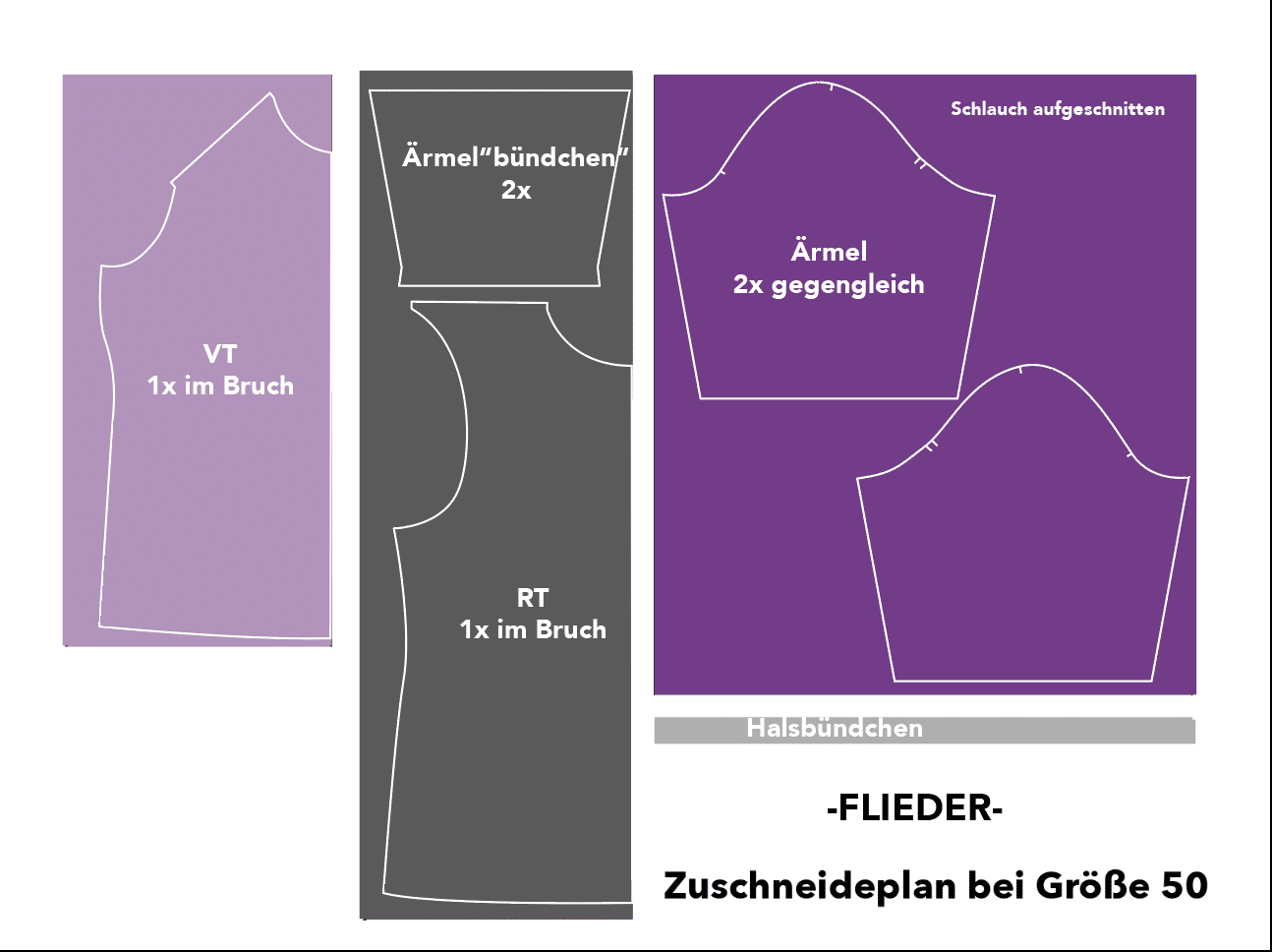 VT+RT kannst du direkt im Bruch zuschneiden. Für die Ärmel musst du den Schlauch aufschneiden (siehe Zuschneideplan).