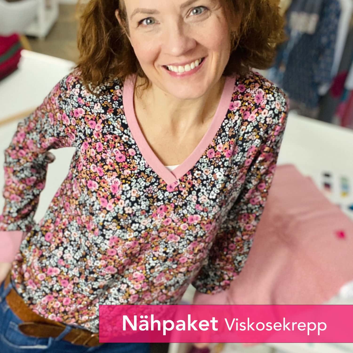 Nähpaket Blümchendruck für Pulli mit V-Ausschnitt