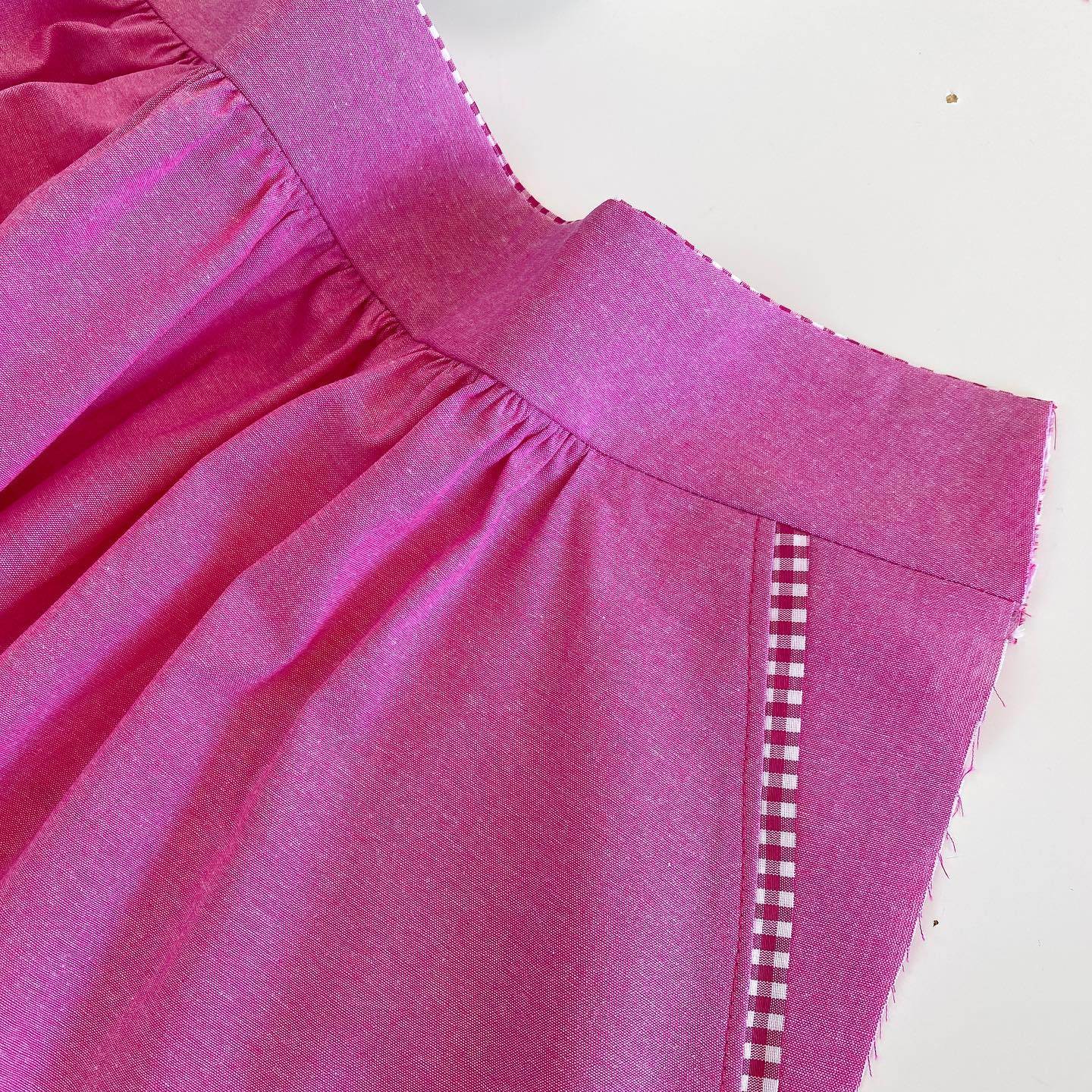 Der Vichykaro-Stoff kann optional für akzentuierende Designdetails an den Taschen und Saum verwendet werden, machen den Rock aber zum Hingucker.