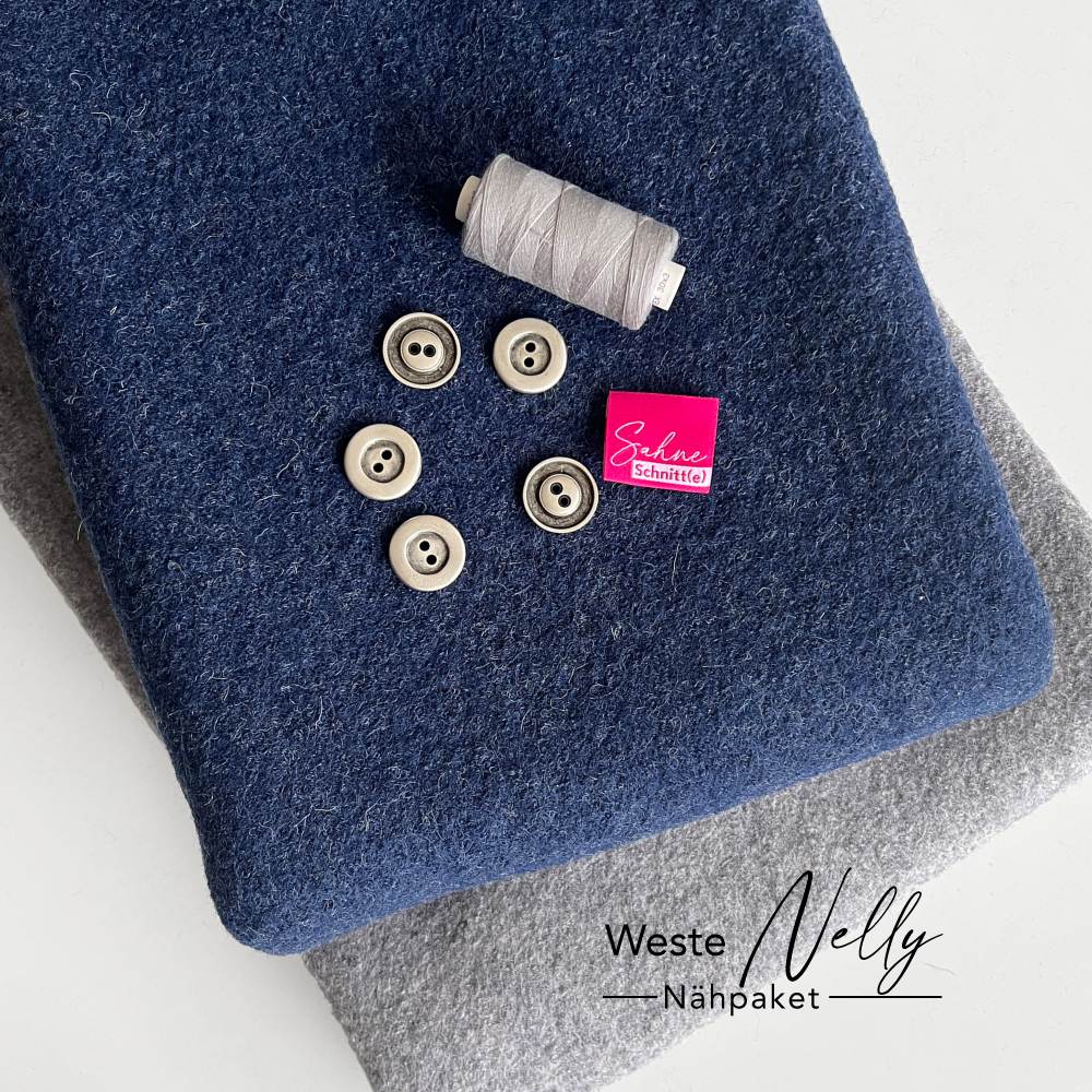 Damit du nicht erst lange nach allen Zutaten suchen musst, haben wir hier ein Nähpaket zusammen gestellt, mit dem du sofort starten kannst. Es ist ausreichend Walk je Farbe im Nähpaket enthalten, dass du selber entscheiden kannst wie du die Weste gestalten möchtest.