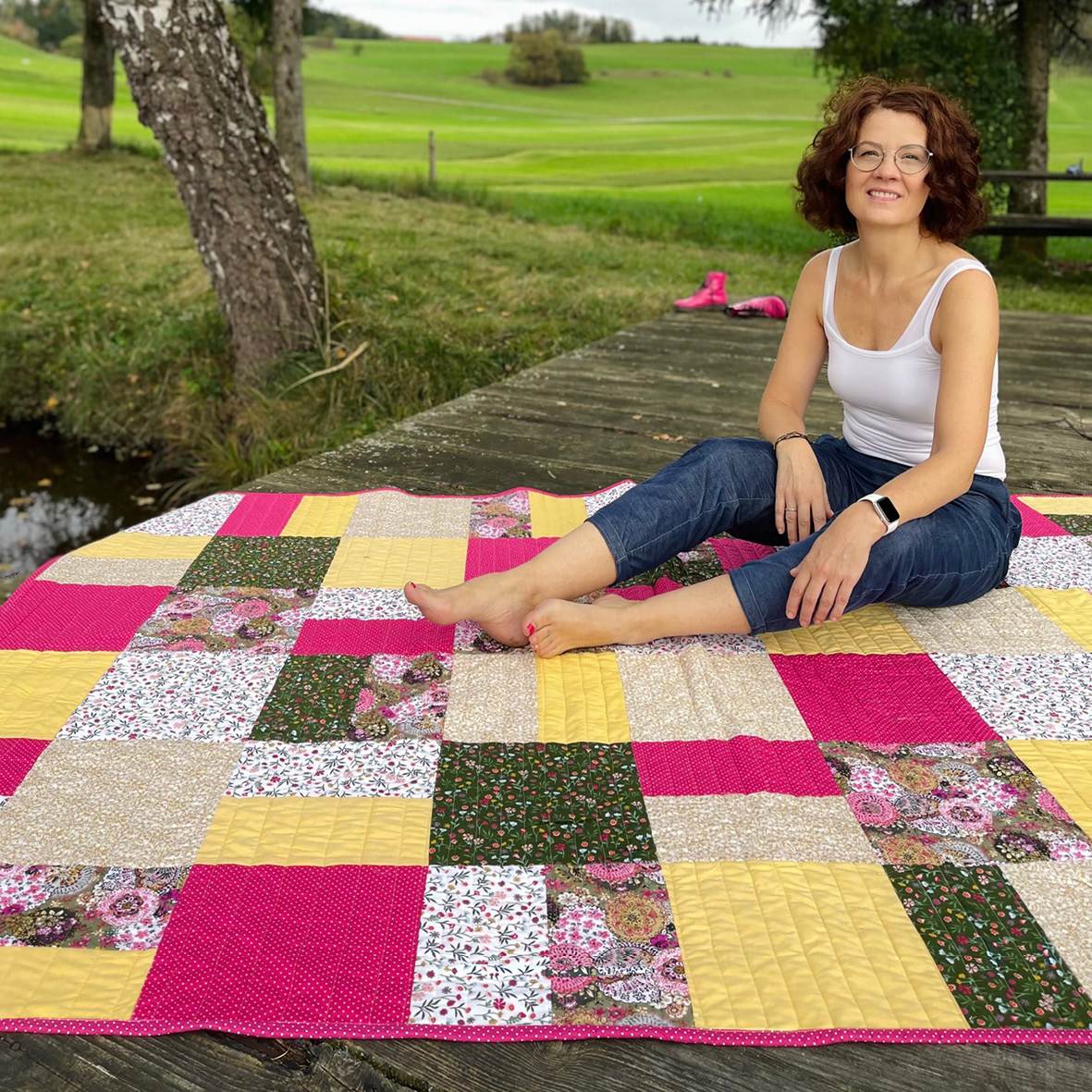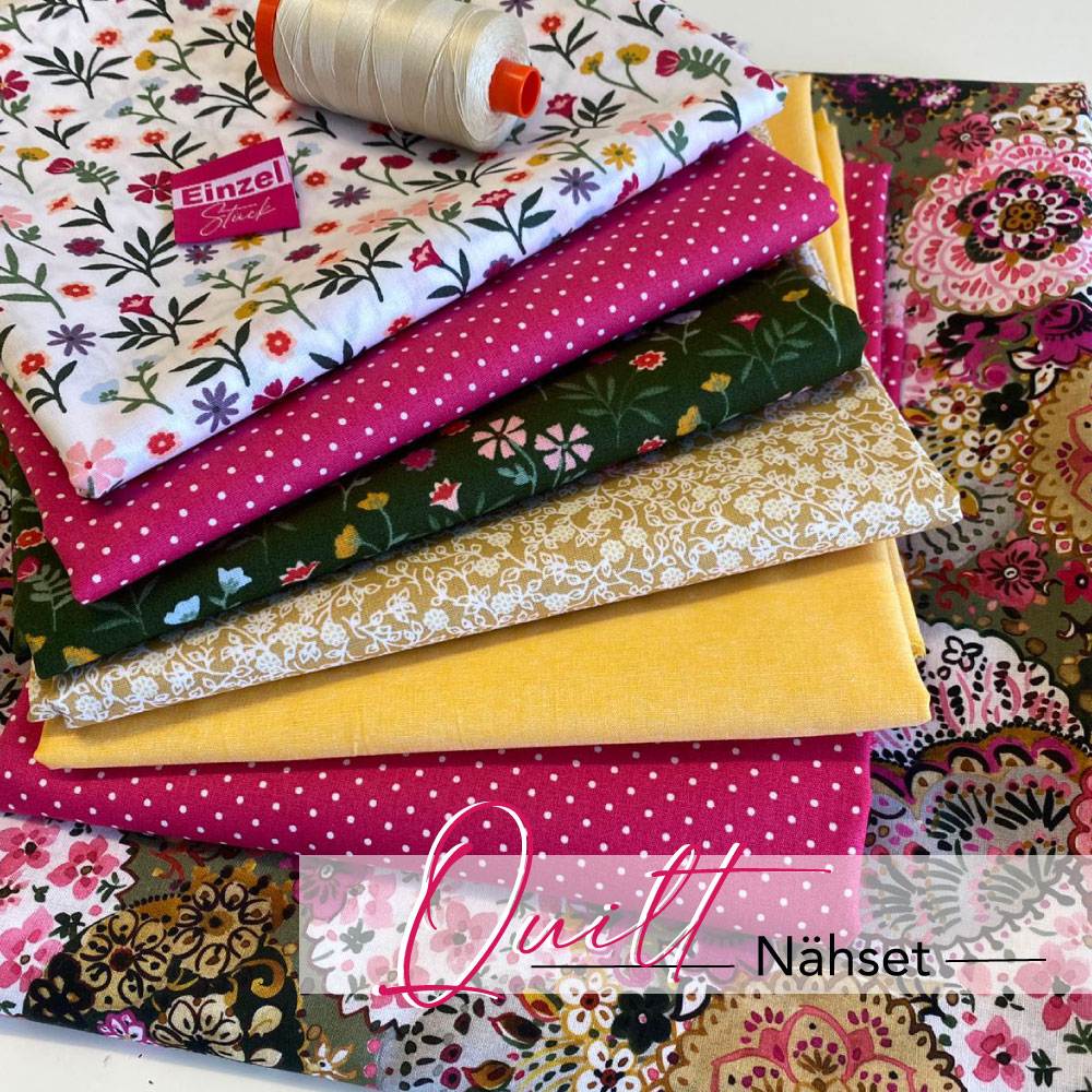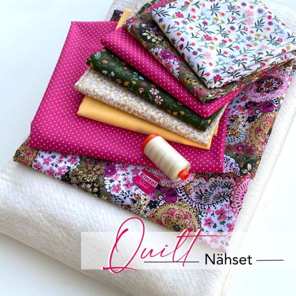 Natürlich kannst du aber auch deinen Quiltideen freien Lauf lassen und ein ganz anderes Quilt-Prachtexemplar daraus entstehen lassen. Wir haben uns auf die Suche nach schönen, farblich abgestimmten Stoffen gemacht und alle Zutaten zusammen gestellt. Du verlierst also keine Zeit und Geduld bei der Suche nach passenden Materialien, sondern kannst sofort mit dem Nähen beginnen.