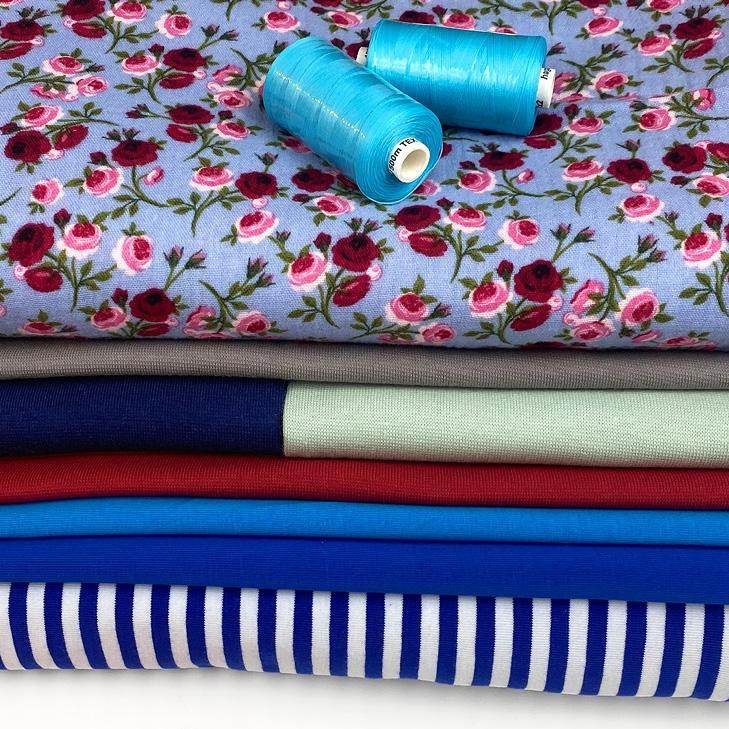 Hier haben wir für dich ein großes Set zusammengestellt, aus dem du 2-3 Shirts (je nach Modell), 3 Mützen und ein großes Musselin-Tuch nähen kannst.