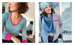 So könnten deine Modelle (Shirt, Mütze, Tuch) aussehen. Hier in einer anderen Farbkombination. (nicht vorrätig)