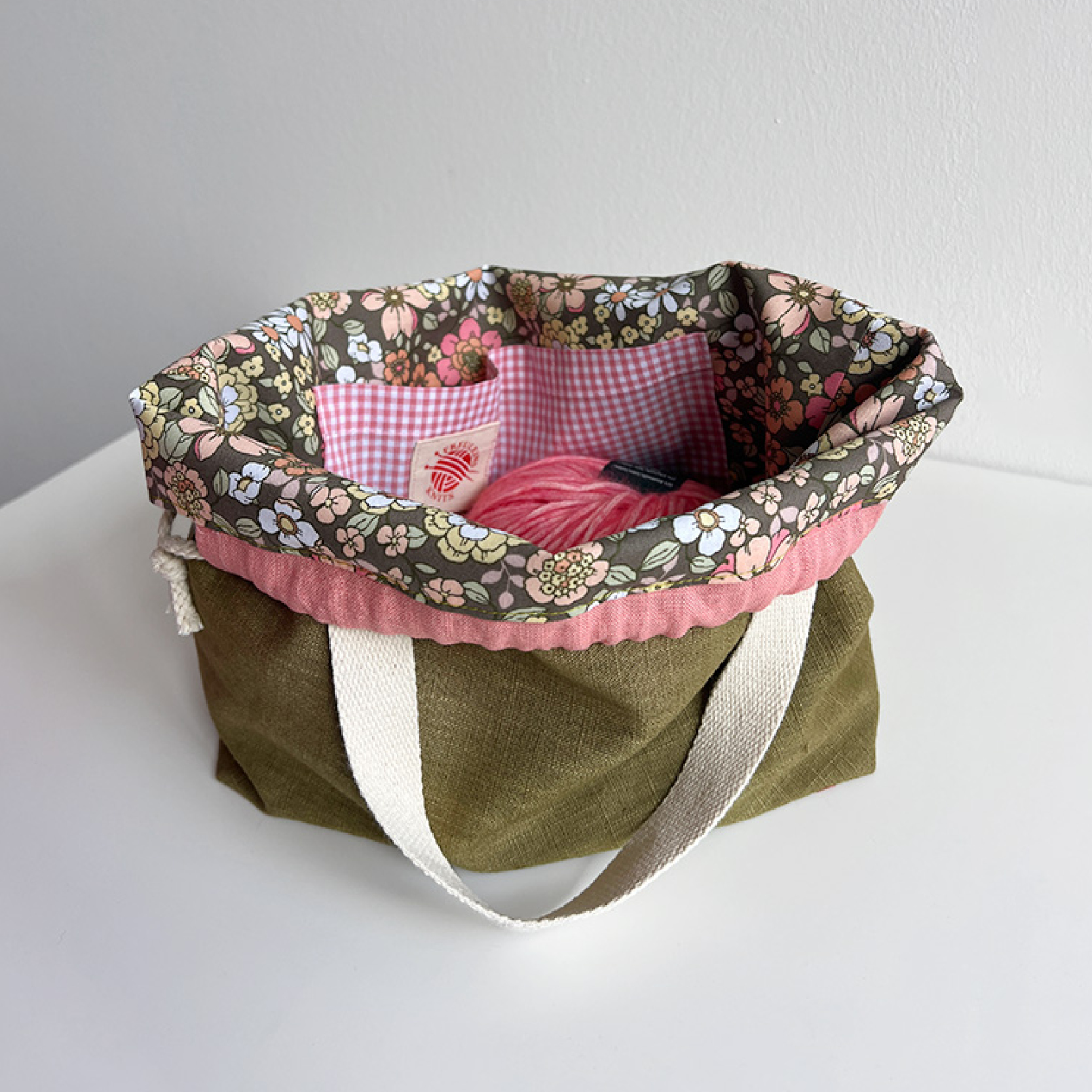 Stylische Projekttaschen für Strickzeug, olivgrüv