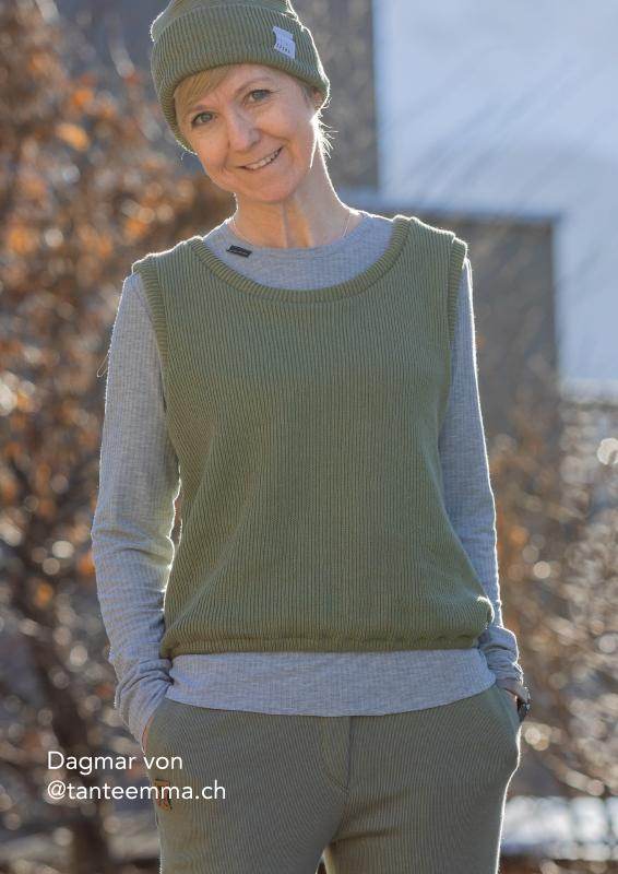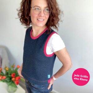 - Einfach zu nähen und zu tragen – Der Pullunder ist perfekt für Nähanfänger und Fortgeschrittene, die ein Projekt suchen, das gleichzeitig praktisch und stylish ist.
