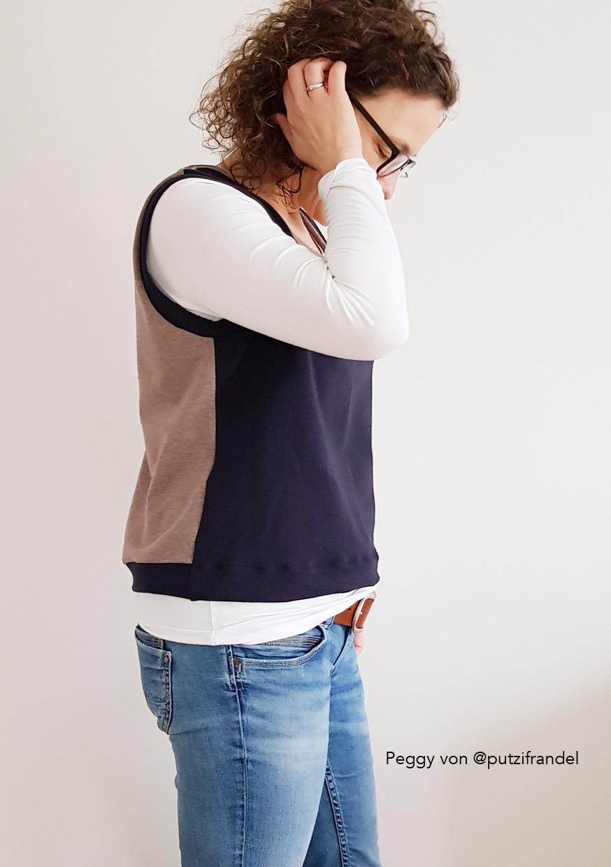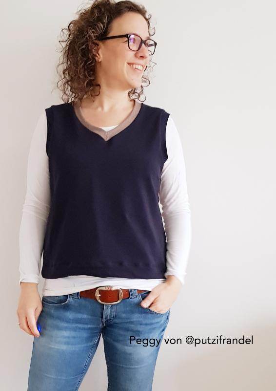 Der Pullunder ist ist leger geschnitten, aber nicht körperfern. Konzipiert ist der Pullunder Ruth für dehnbare Stoffe wie Strick, Sweat, Frenchterry oder Jerseyjacquard.