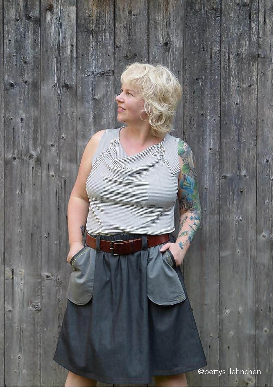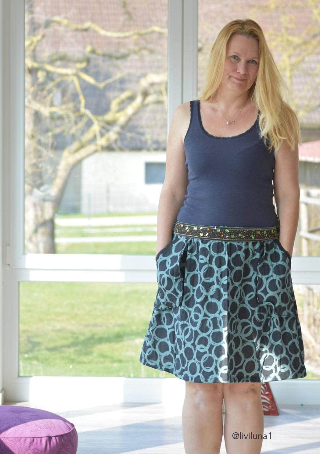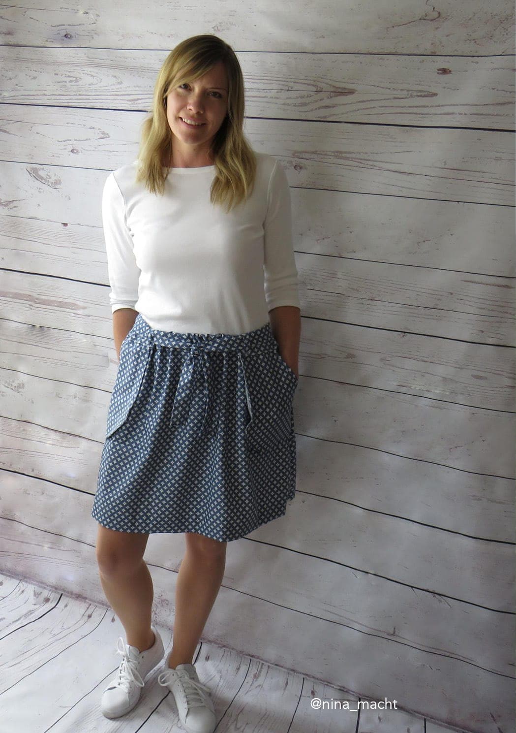 Mimmi ist ein schneller, leicht zu nähender, luftiger Sommerrock, der im Urlaub zum unschlagbaren Lieblingsteil werden wird. Die großen losen Taschen machen den Rock nicht nur praktisch sondern auch zum Blickfang. Mit einem Gürtel über dem Gummibund getragen sieht Mimmi richtig cool aus. schneller Rock Mimmi