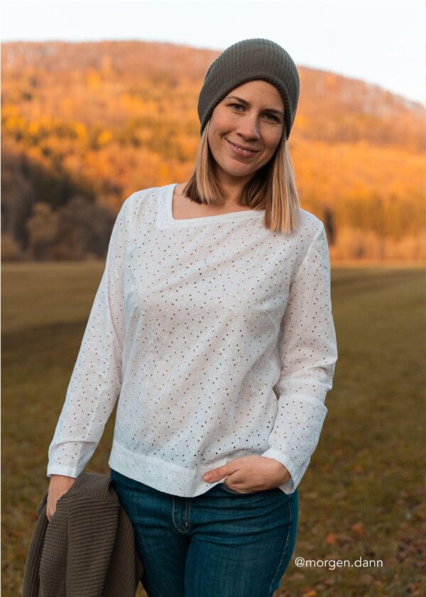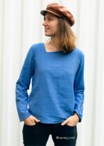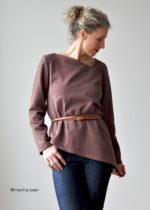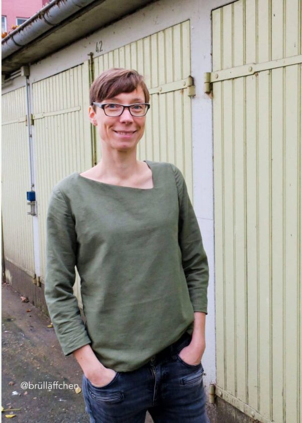 Das Shirt schräge Olga ist perfekt geeignet für Nähanfänger. Das Schnittmuster ist einfach zu nähen, macht aber viel her durch den ganz besonderen Ausschnitt. Ganz schnell hüpft Olga unter der NäMa hervor, wenn die Webkanten (die ja sehr schön sein können) als Saumabschluss verwendet werden. Das erspart das Umnähen des Saumes und kann als zusätzliches Designdetail genutzt werden.