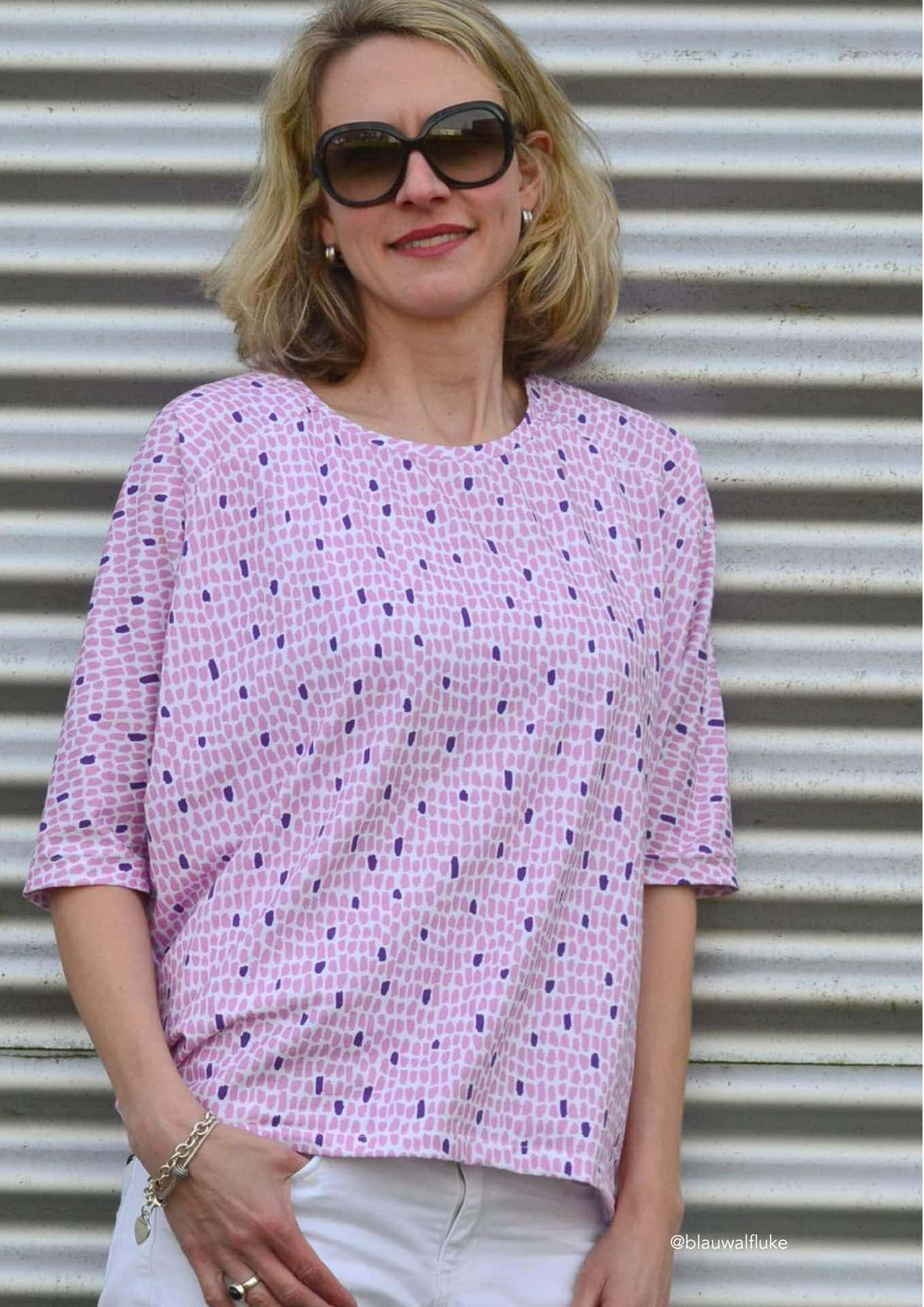 ich habe Jolanda in Webware und Jersey genäht. Beide Teile sind ausgesprochen schön. sie sind ein toller Ersatz für „normale“ T-Shirts.