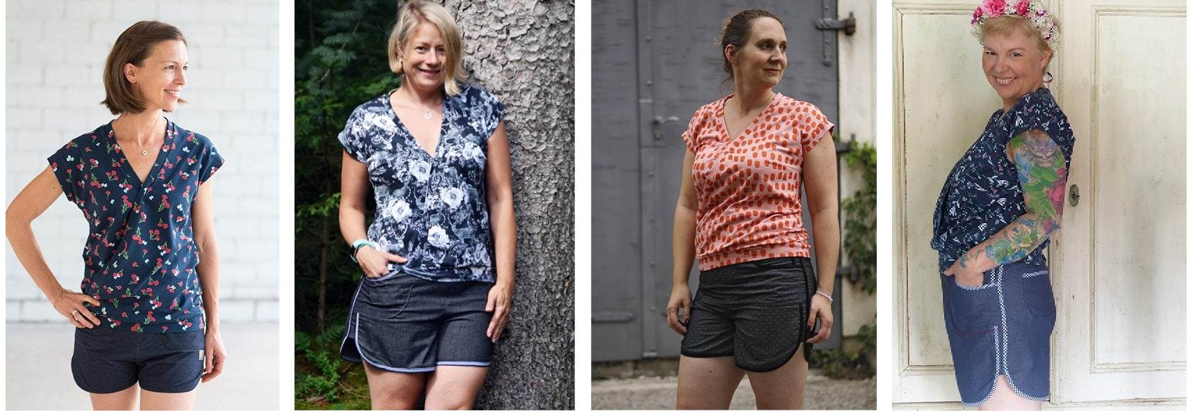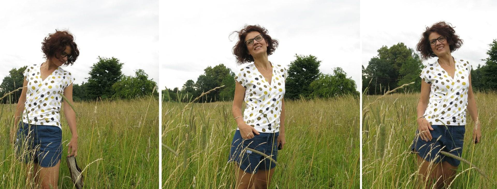 Katinka ist ein einfach zu nähendes Shirt. Durch die überlappenden Vorderteile entsteht eine Wickeloptik. Magst du es sportlich? Dann nähe die Katinka in deiner Kaufgröße. Magst du es lieber weiblicher/figurbetonter? Dann wähle den Schnitt eine Größe kleiner, als deine Kaufgröße.