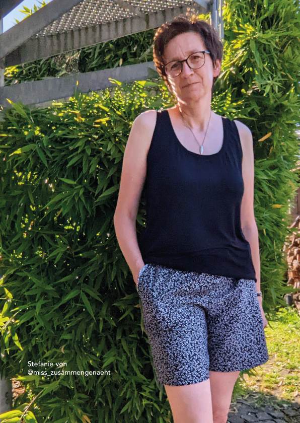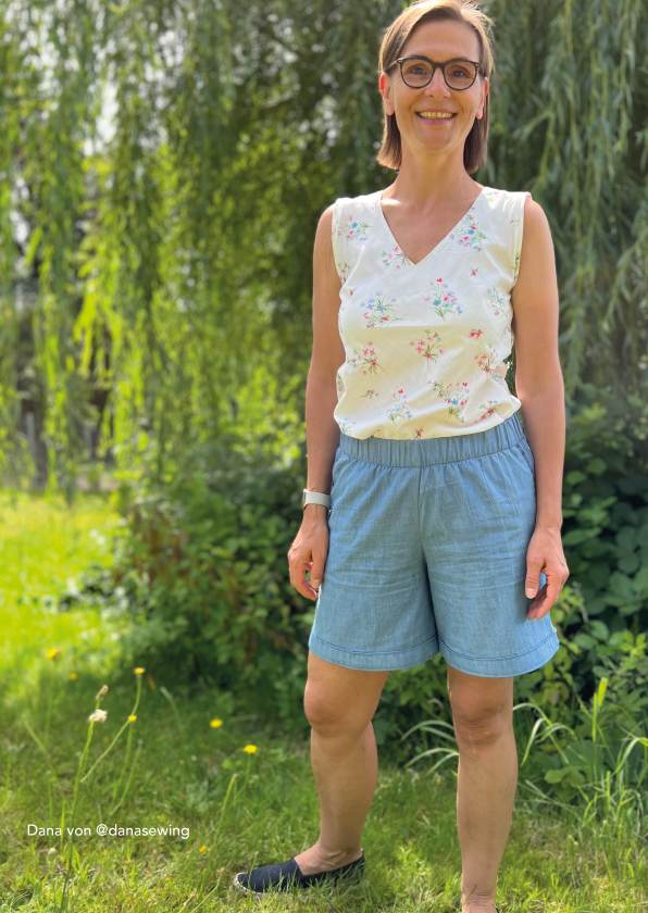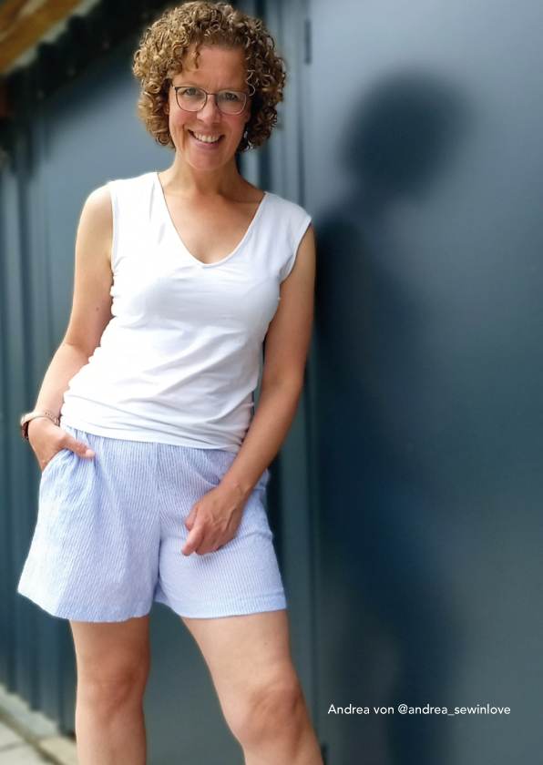 Konzipiert sind die Shorts für luftige Sommerstoffe wie Viskose, Musselin, Batist, weich fallender Baumwollstoff etc., die für ein angenehmes Tragegefühl sorgen.