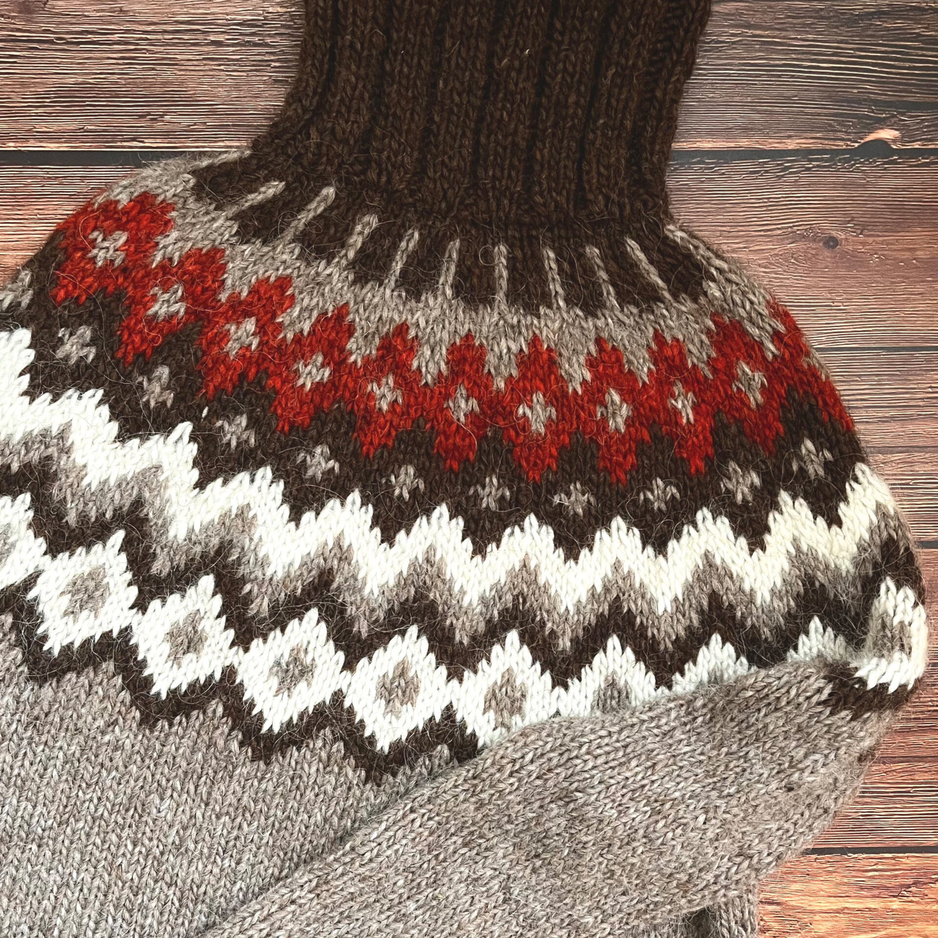 Am schönsten und ursprünglichsten wird ein Islandpullover, wenn er aus echter isländischer Wolle gestrickt ist. Ihre besondere Struktur und Robustheit verleihen dem Pulli genau den charakteristischen Look und das traditionelle Gefühl, das man mit klassischen Isländer-Pullis verbindet.