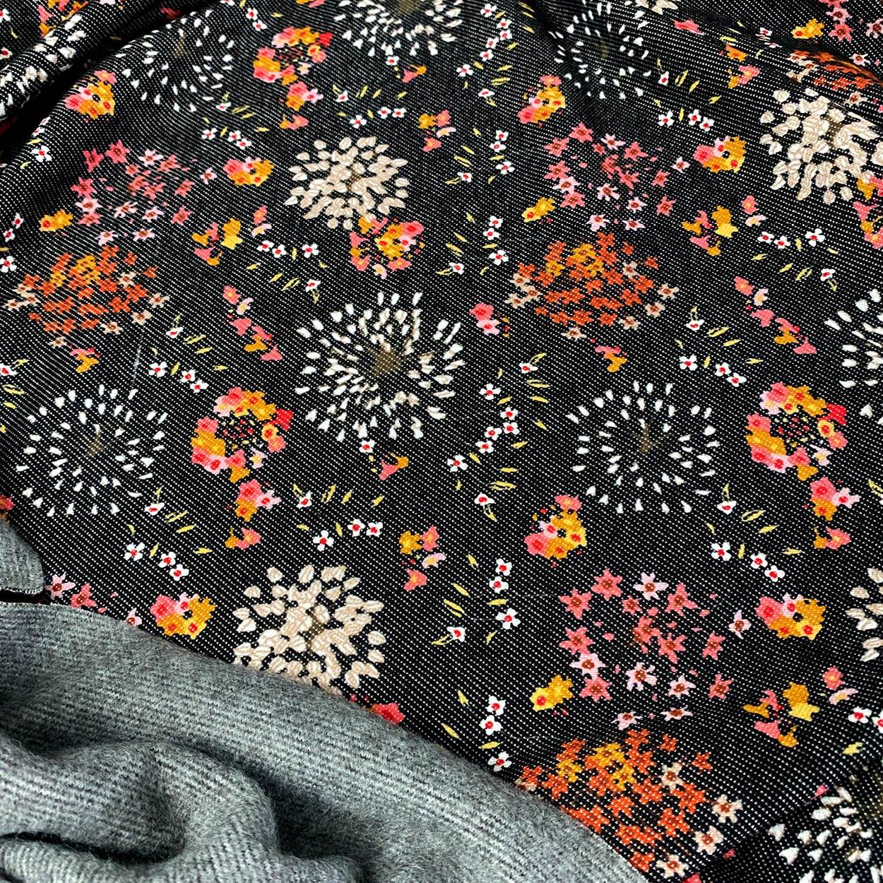 KUSCHELIGER SWEAT – schwarz flower – RESTSTÜCK 2,2m