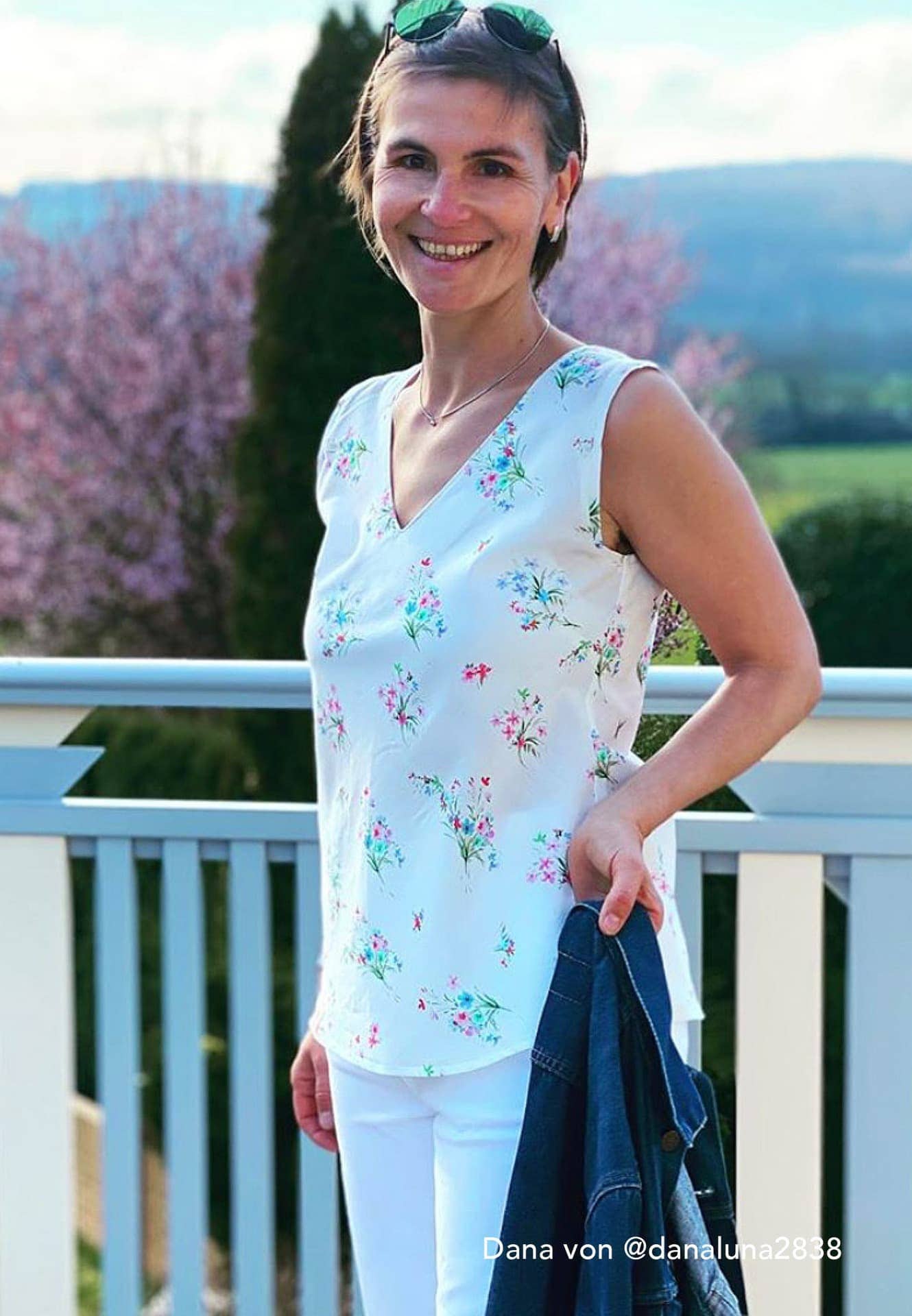 das Top in Gr. 44 gleich zweimal genäht -passt wunderbar und fällt