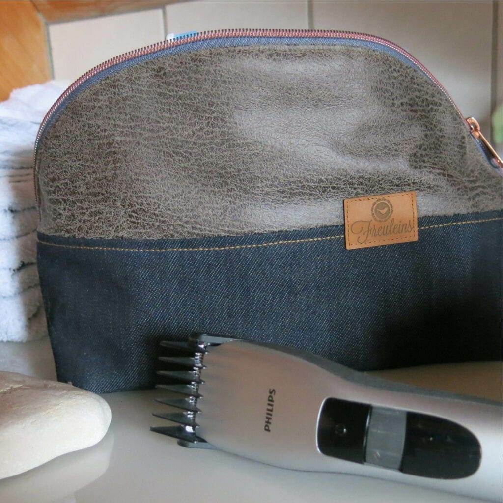 Da passte es grade, dass mein Freund demnächst OHNE uns mit seinen Freunden für ein paar Tage verreist. (Fragt nicht: Fahrrad-Hardcore-Training. Da bleibt frau sehr gerne zuhause) Aber damit er mich nicht vergisst, während dieser Zeit (was er nieeeee tun würde), dachte ich, ich näh ihm einen Kulturbeutel.