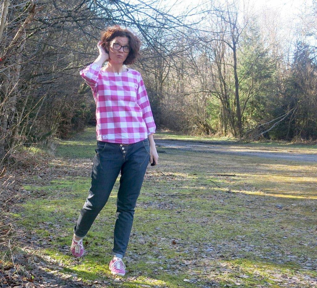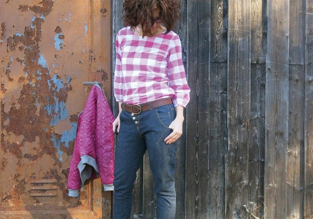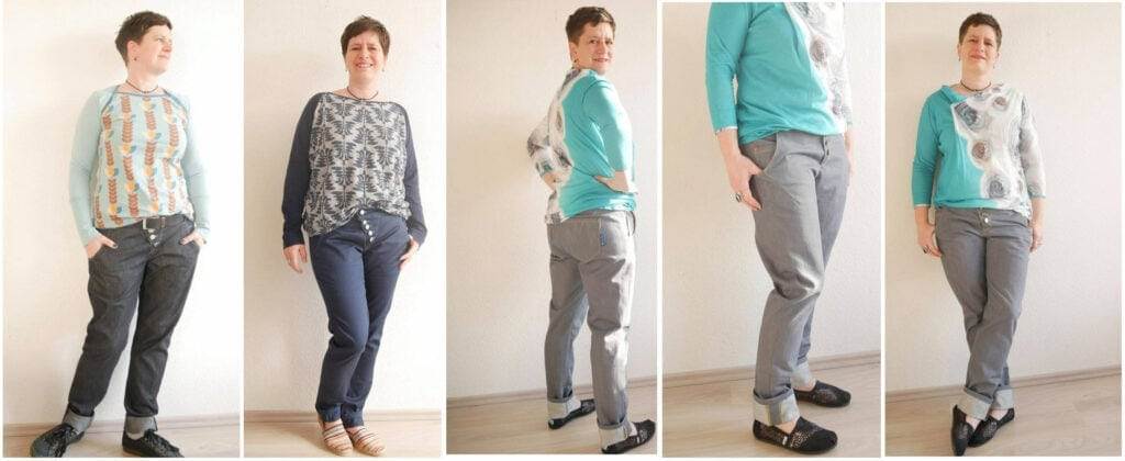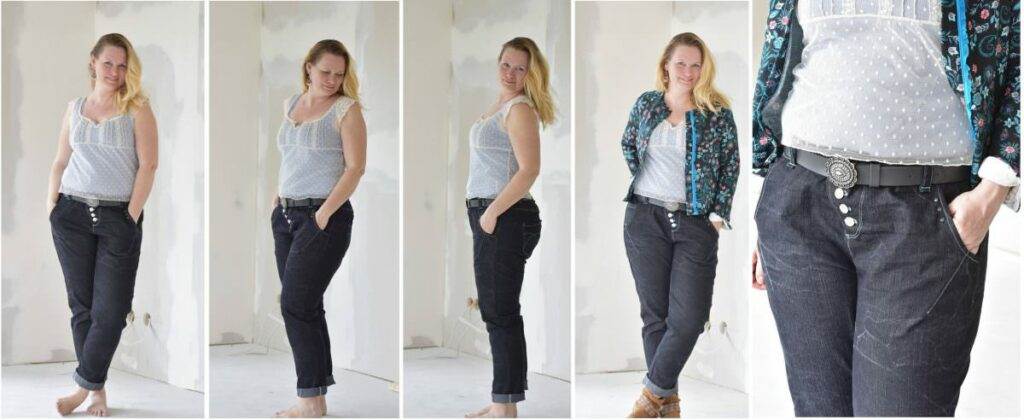 Schluss – aus – Ende – vorbei! Wir machen uns die Welt, wie sie uns gefällt/passt…. äh Jeans. Es wäre gelogen, wenn ich versprechen würde, dass die Gloria auf Anhieb Jeder passt. Nein, das tut sie zwar schon (stimmt’s Denia, 2x Anja, Kathrin und Anke..?), aber wahrscheinlich müssen doch hin und wieder Passformanpassungen vorgenommen werden. Gerade wenn du, wie viele der Mädels, ein Hohlkreuz hast.Aber genau dafür gibt es jetzt den Schnitt mit der Anleitung, wie du das nach deinen Bedürfnissen anpassen kannst, damit du bald auch eine Gloria im Schrank liegen hast. Liegen? Ach nein, als ständige neue Begleiterin tragen wirst! Und wenn du jetzt sagst: „Naja, solche Hosen stehen mir ja sowieso nicht. Ich bin nicht so schlank, meine Oberschenkel…“, schau dir die Fotos an. Gerade Mädels mit etwas mehr Oberschenkelweite oder sogar im 5. Monat schwanger, sehen BOMBE in der Gloria aus.Du hast noch nie eine „richtige“ Hose genäht? Frag mal meine Nähmädels: Ich glaube die meisten hatten davor auch keine Hose genäht. Und dann gleich eine Jeans?! Schreck lass nach. Aber alle haben den Angstgegner besiegt und tragen nun ihre Gloria stolz wie Bolle.