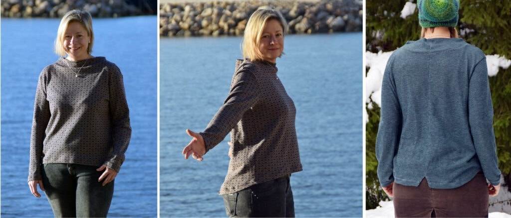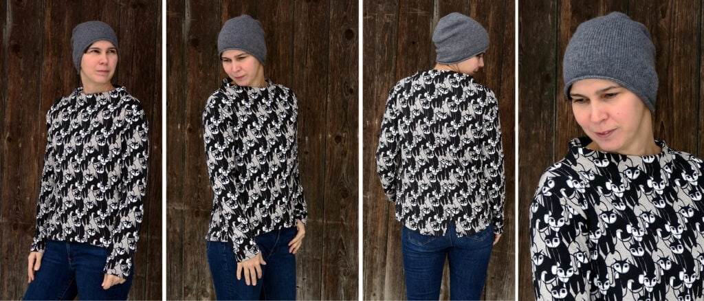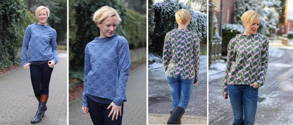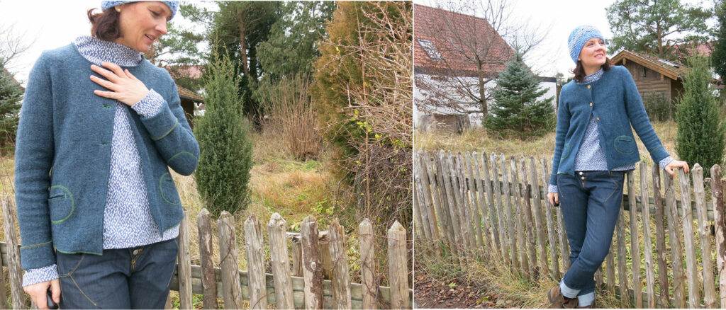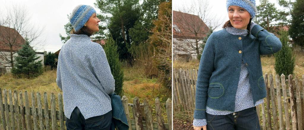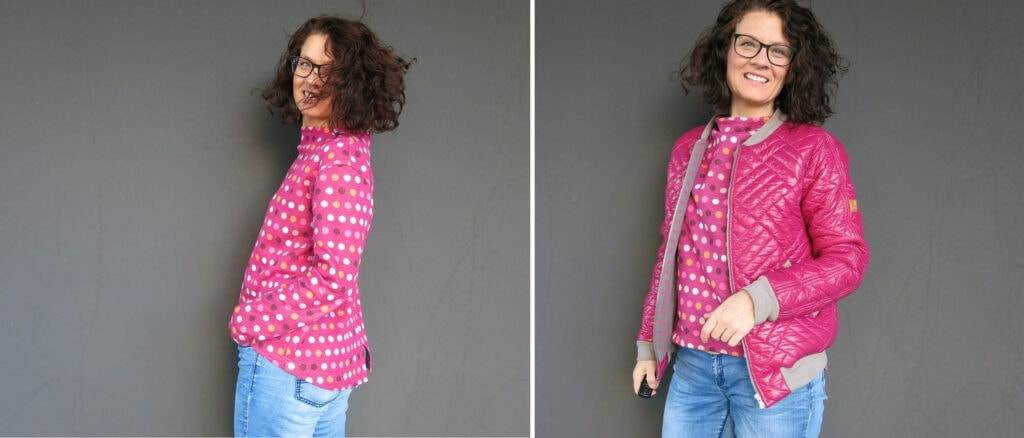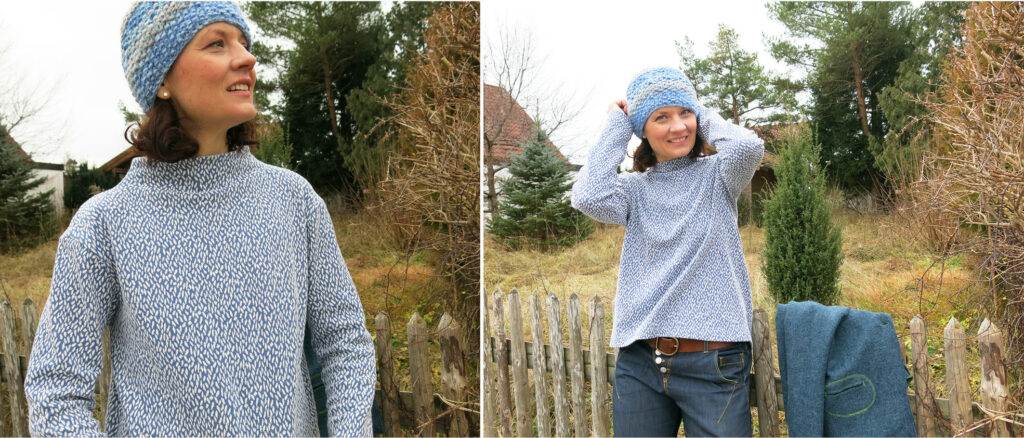 Ich trage Paola hier unter meiner Jacke Eliza aus Wollwalk genäht. Die hat einen etwas weiteren Hausausschnitt, da passt der Turtleneck wunderbar drunter.