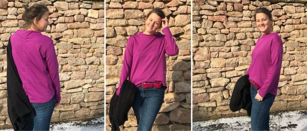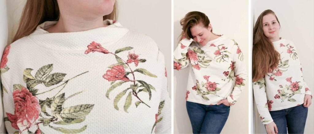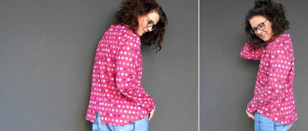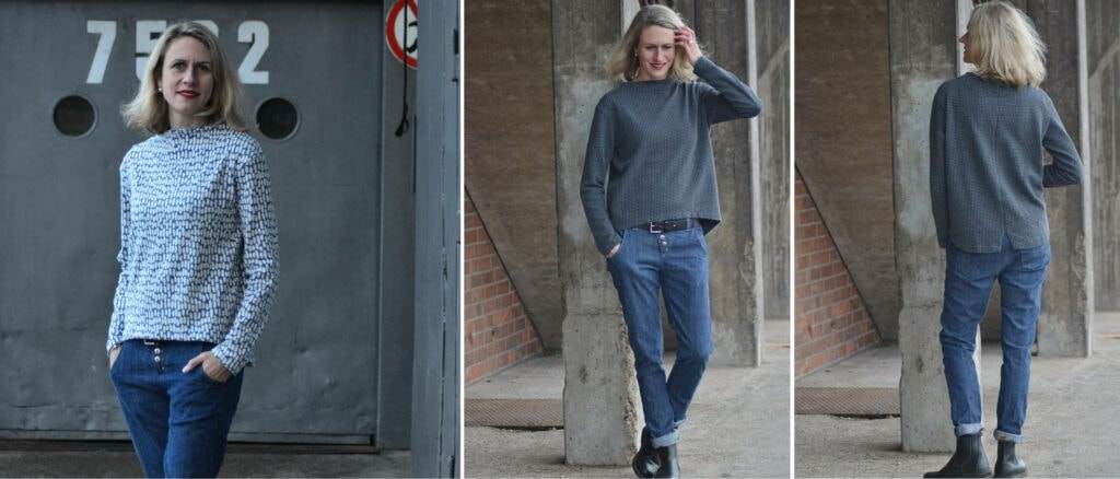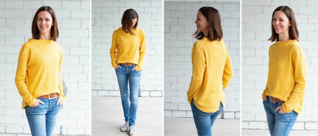 Jetzt aber endlich zum Shirt. Turtleneck Shirt Paola, das recht leger geschnitten ist, aber nicht oversize. Die überschnittenen Schultern unterstützen die legere Optik.